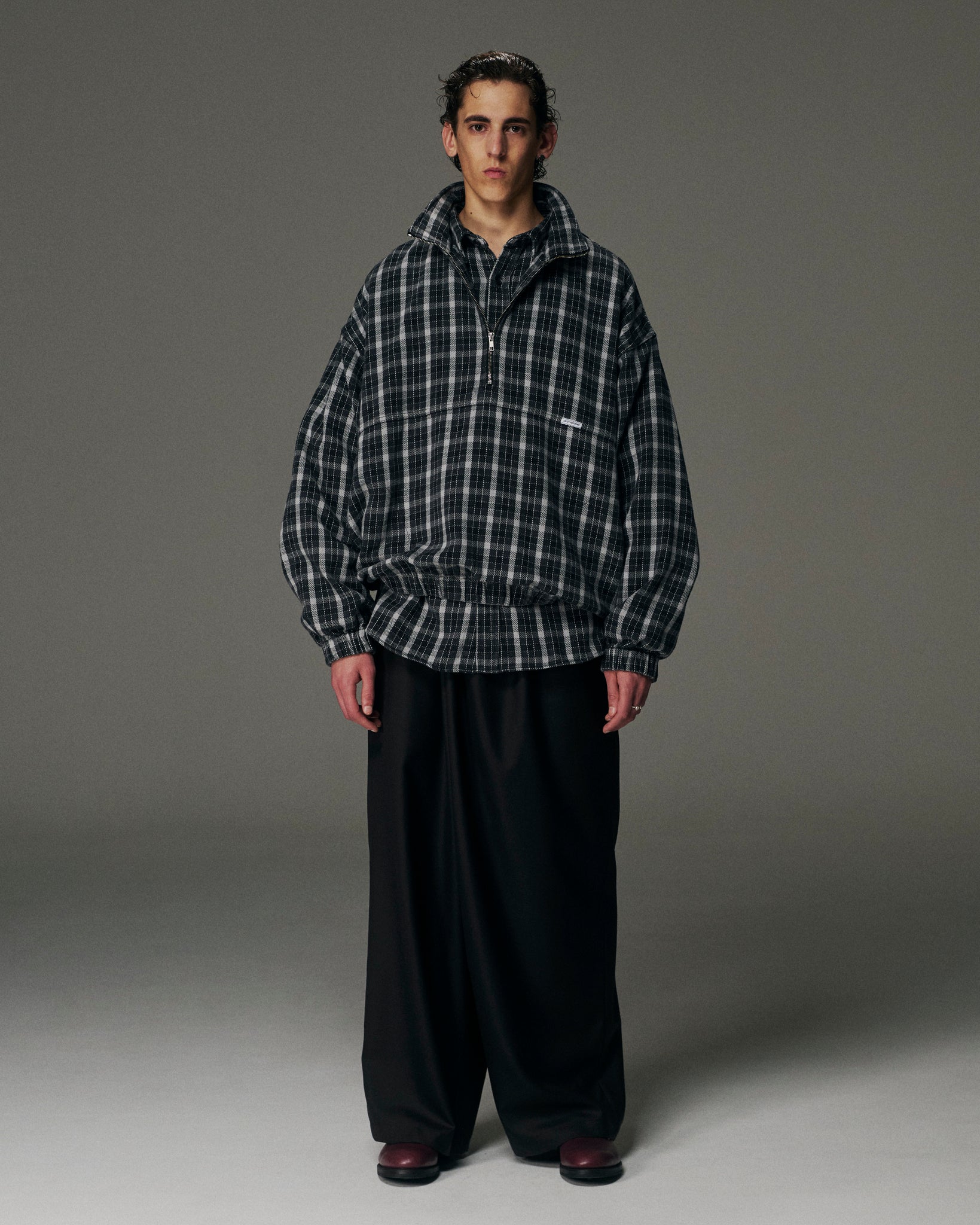AD Processing Heavy Flannel Check Half Zip Pullover